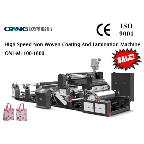 This high speed laminating machine making use of the good adhesive property of polypropylene &polyethylene at melting status, the machine adheres and laminated paper or color-printed OPP &CPP film to nonwoven fabric, non woven bag under pressure, and through cut-off and the extruder with helical gear reducer of 20CrMoAIA alloy steel and done treatment of nitrogenation.